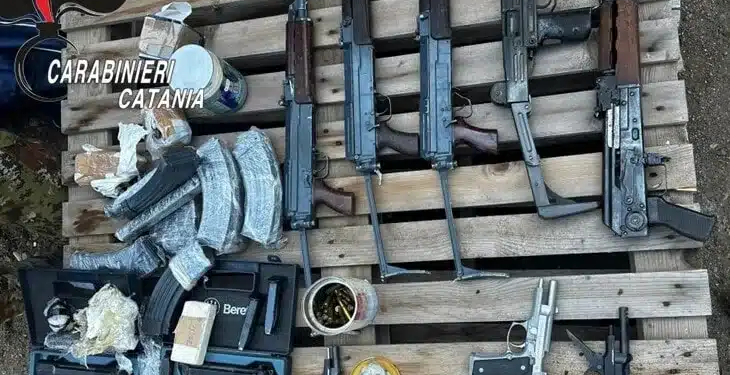 Armi da guerra e clandestine, con relative munizioni, trovate sottoterra a più di due metri di profondità in contrada Coscia del Ponte a Paternò: è quanto rinvenuto dai Carabinieri del nucleo operativo della Compagnia di Paternò, con il supporto della Compagnia di intervento del 12° Reggimento Sicilia e dello squadrone eliportato Cacciatori di Sicilia.