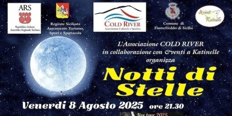 Dal 8 al 10 agosto 2025, la Villa Comunale di Fiumefreddo di Sicilia ospiterà la rassegna estiva “Notti di Stelle”, organizzata dall’associazione culturale e sportiva Cold River, con il patrocinio del Comune, dell’Assemblea Regionale Siciliana e dell’assessorato regionale al Turismo, Sport e Spettacolo. Tre serate pensate per coinvolgere residenti e turisti all’insegna della musica, della comicità e dello spettacolo. L’ingresso è gratuito e aperto a tutti, per un evento che si propone come momento di aggregazione e valorizzazione del territorio.