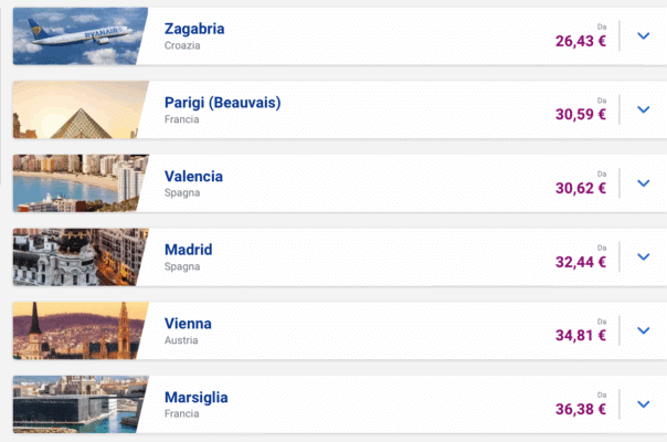 Per chi parte da Palermo, lโOfferta Flash di Ryanair apre le porte a destinazioni europee affascinanti a prezzi decisamente convenienti. Non mancano le offerte per l’aeroporto di Palermo, anche in questo caso la metร piรน economica sarร raggiungibile con soli 14 euro. Tra le mete piรน care, con soli 26,43โฏโฌ, รจ possibile volare a Zagabria, ideale per chi cerca una cittร ricca di storia e atmosfera. Poco sopra i 30 euro troviamo diverse opzioni: Parigi (Beauvais) da 30,59โฏโฌ, Valencia da 30,62โฏโฌ, e Madrid da 32,44โฏโฌ, perfette per chi sogna un break in stile spagnolo o francese.