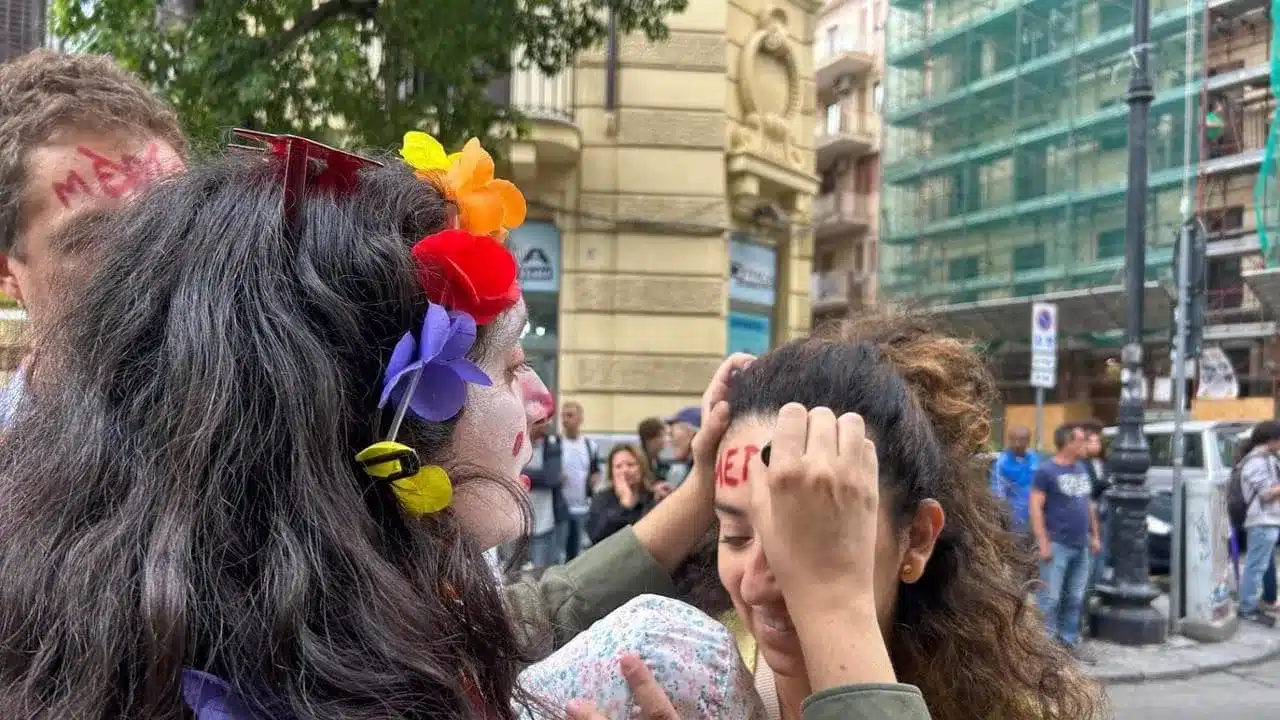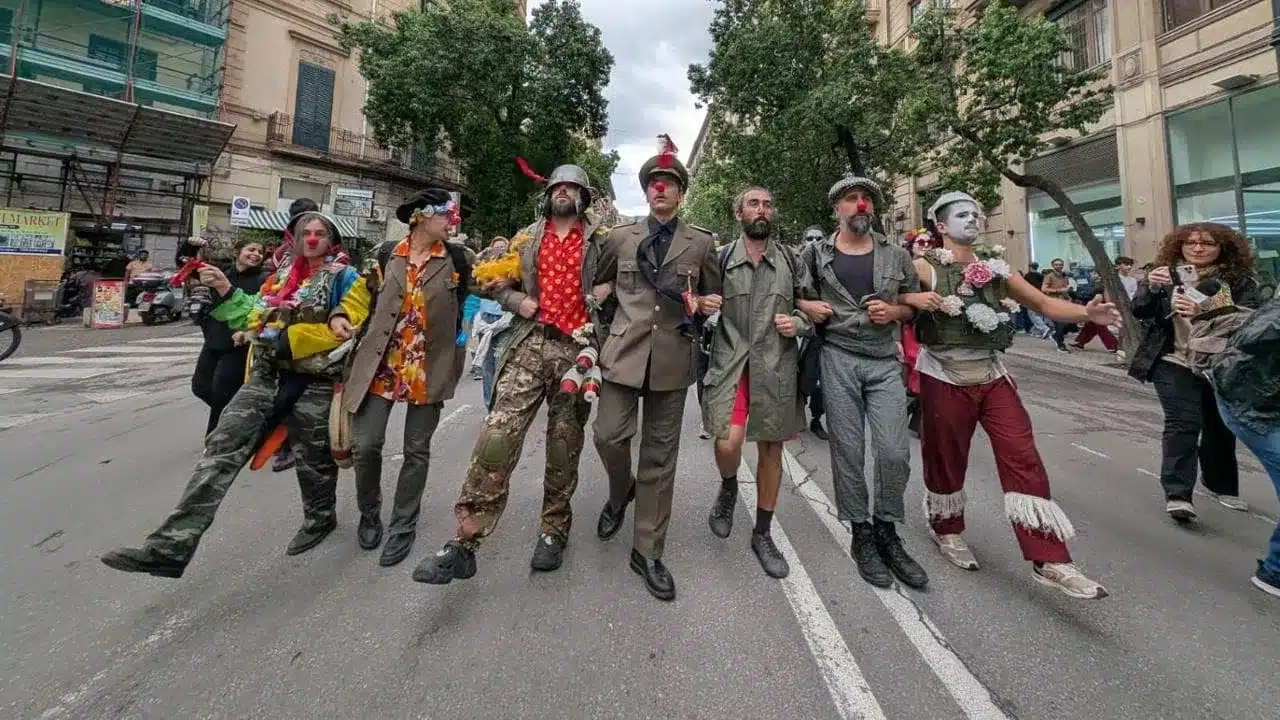 Le piazze siciliane hanno visto una partecipazione variegata: studenti, lavoratori, pensionati e famiglie intere hanno scelto di unirsi ai cortei. A Palermo in testa al corteo hanno sfilato artisti di strada e clown vestiti da militari, in chiave satirica, “per ridicolizzare la violenza e le armi”. Altri hanno deciso di dare testimonianza diretta del loro lavoro, come una coppia di medici che ha portato in braccio la figlia di soli quattro mesi, con la scritta “Medici” dipinta in fronte.