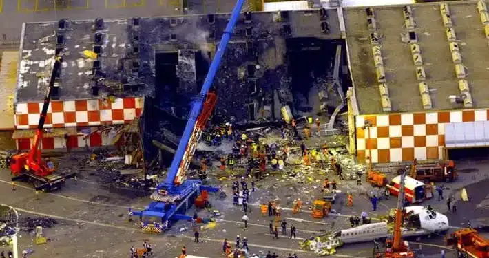 In pochi secondi, un luogo di partenze e abbracci si trasforma in un inferno di fiamme, fumo e morte.