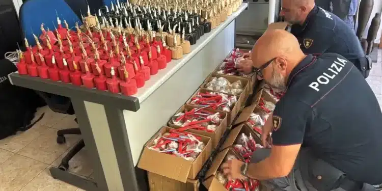 A far scattare l’allarmen un dipendetene dell’azineda che ha notato alcune scatole di cartone danneggiate che riportavano etichette riconducibili a fuochi d’artificio. Il personale dellโ€™hub ha quindi richiesto lโ€™intervento degli artificieri del Nucleo dellโ€™Ufficio Prevenzione Generale e Soccorso Pubblico, addestrati per operare in totale sicurezza. Dopo aver messo in sicurezza la zona, gli specialisti hanno avviato le verifiche. Aprendo gli scatoloni, i poliziotti hanno rinvenuto centinaia di ordigni artigianali, alcuni dei quali di notevoli dimensioni.