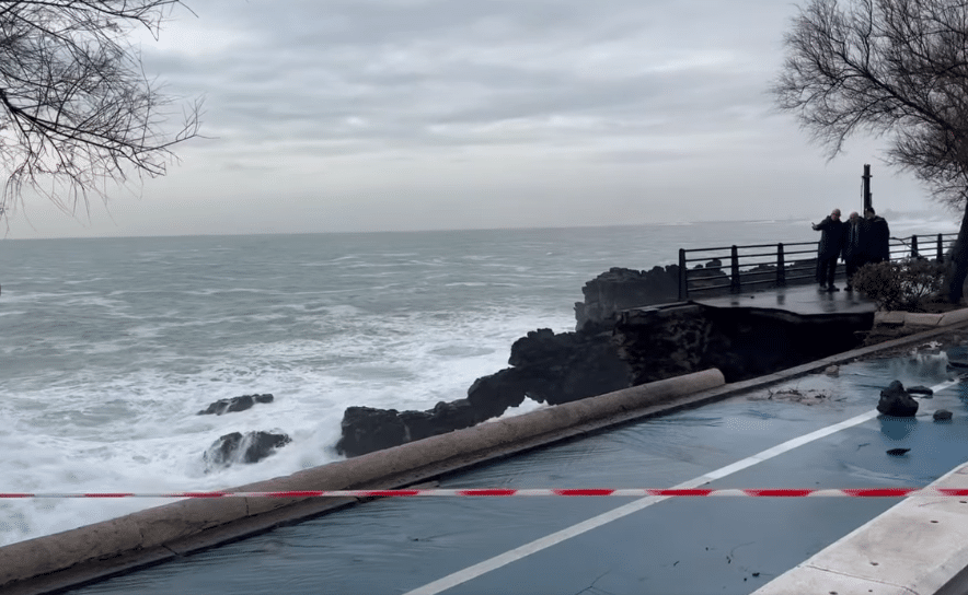 Dopo le forti mareggiate, che hanno duramente colpito il litorale nelle ultime 48 ore, hanno devastato il Lungomare di Catania, provocandone il cedimento di un marciapiede. La nuova voragine si sarebbe aperta all’altezza di viale Ruggero di Lauria. Le terribili immagini giungono da un video pubblicato dai numerosi cittadini e residenti.