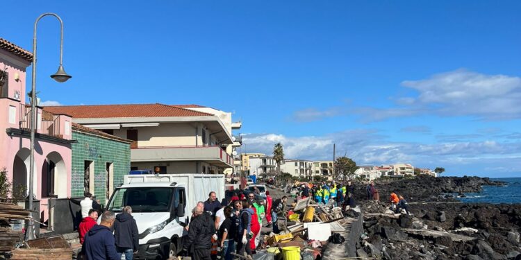 Un centinaio di volontari di tutte le età e non solo residenti si sono riuniti a Stazzo, frazione di Acireale duramente colpita dal ciclone Harry, per rimuovere le grandi quantità di detriti causate dal mare in tempesta che ha abbattuto i muri di diverse abitazioni sul lungomare. L’ invito del sindaco di Acireale Roberto Barbagallo, attraverso i canali social e diffuso dagli enti locali, è stato accolto pienamente e, nella giornata di martedì, a partire dalle mattina, giovani, associazioni e istituzioni hanno risposto presente, dando un sostegno importante, in collaborazione con il comune e con la ditta Tekra. Tutti insieme per un obiettivo comune: far tornare a risplendere Stazzo e tutte le altre zone colpite dal ciclone.