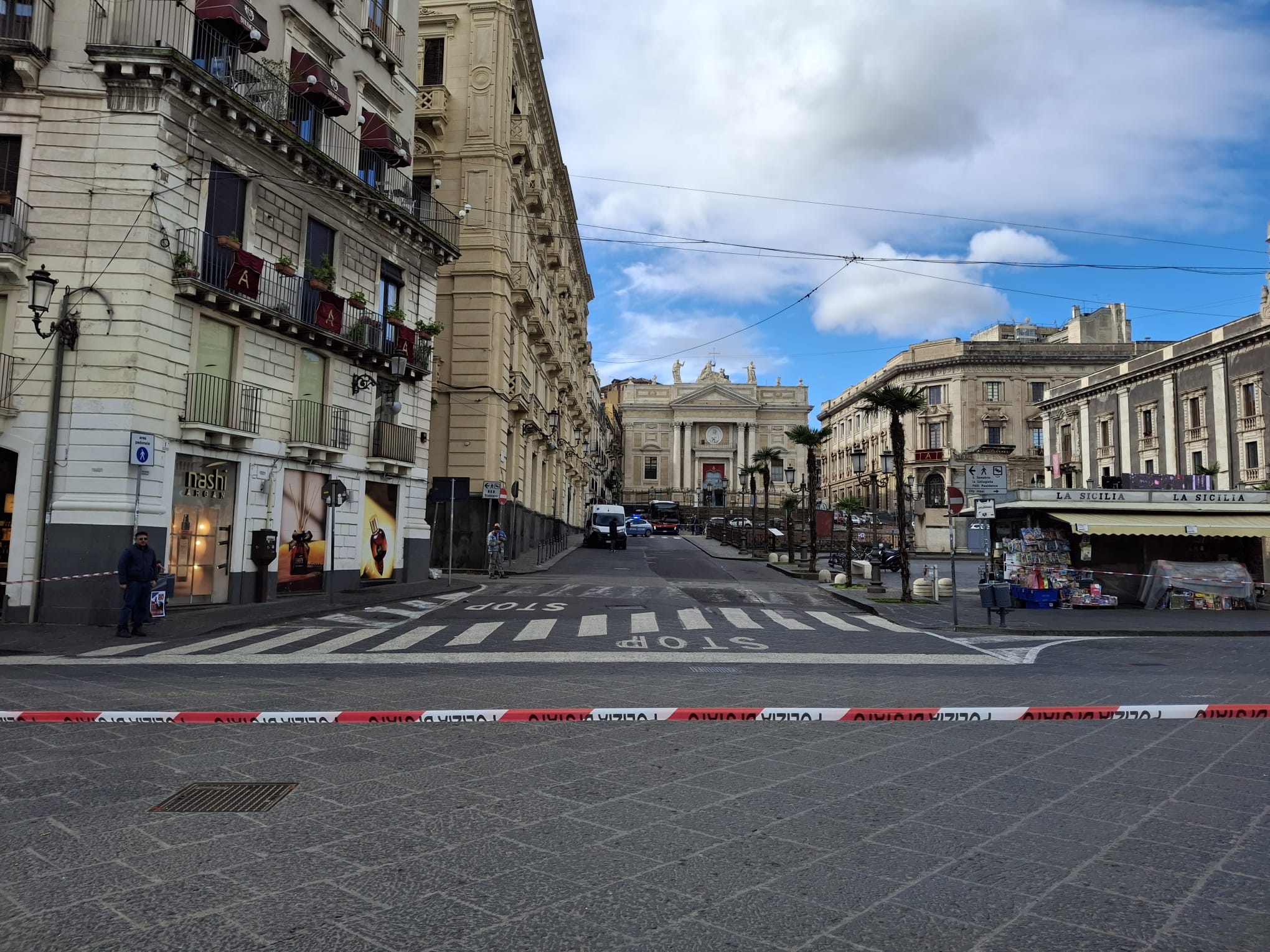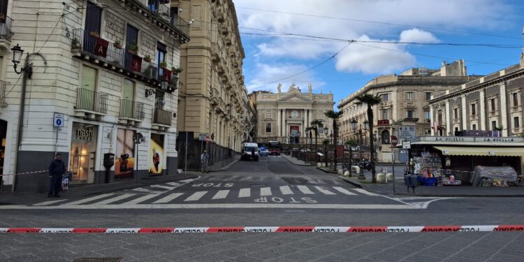 Attorno alle 11 di questa mattina, piazza Stesicoro è stata improvvisamente transennata dalle autorità locali e il traffico completamente bloccato.