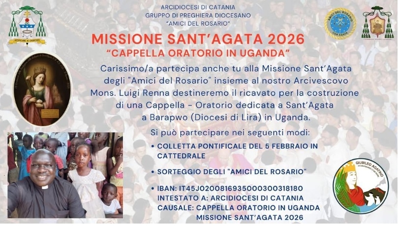 Accanto alle celebrazioni liturgiche, l’Arcidiocesi proSanta muove la Missione Sant’Agata 2026, iniziativa solidale a favore della costruzione di una cappella-oratorio in Uganda, trasformando il cammino spirituale in un vero atto di impegno concreto e universale.
