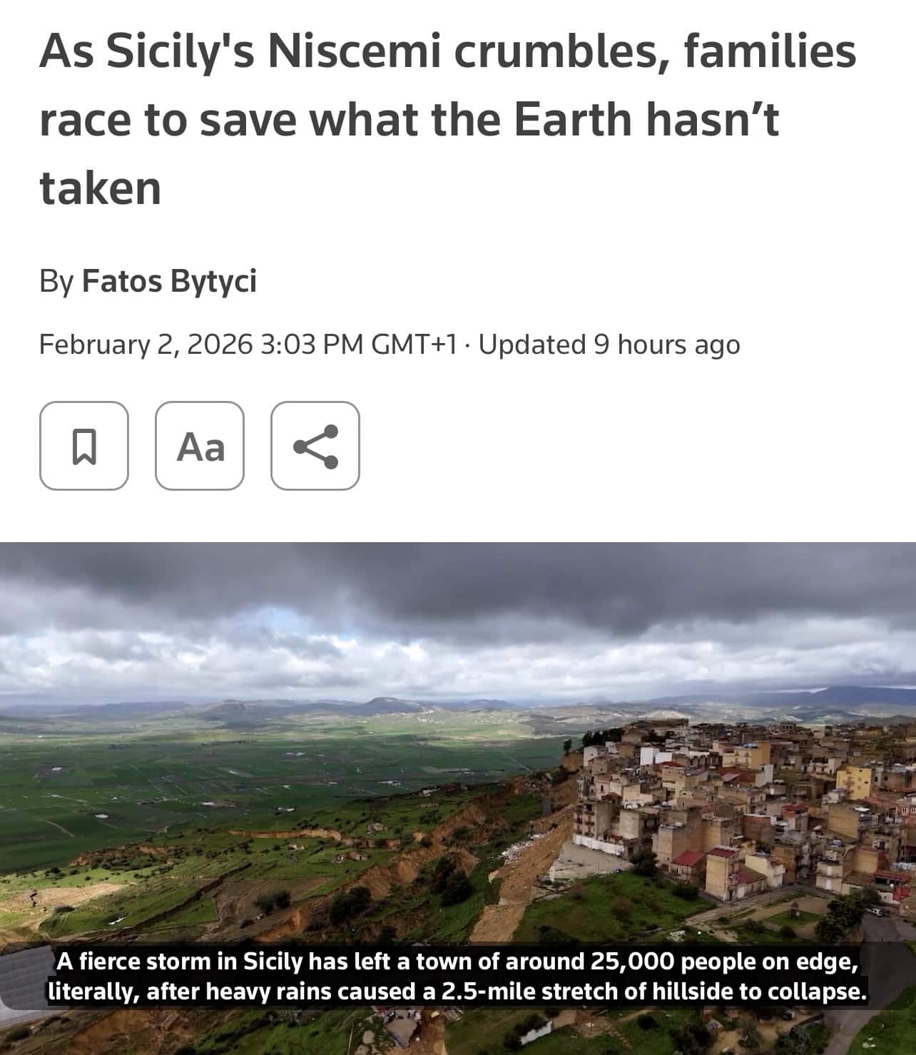 Oggi Niscemi è diventata, agli occhi del mondo, non solo una tragedia locale ma un caso emblematico di come eventi climatici estremi possano mettere in ginocchio intere comunità costruite su terreni fragili.