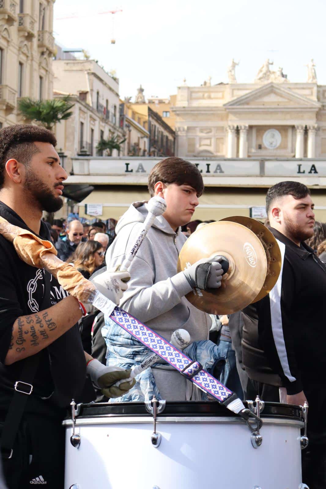 La musica accompagna tutto il percorso. Tra i musicisti ci sono molti ragazzi, alcuni alla loro prima Sant’Agata, altri già con anni d’esperienza, capace di meravigliare i devoti all’ascolto;
