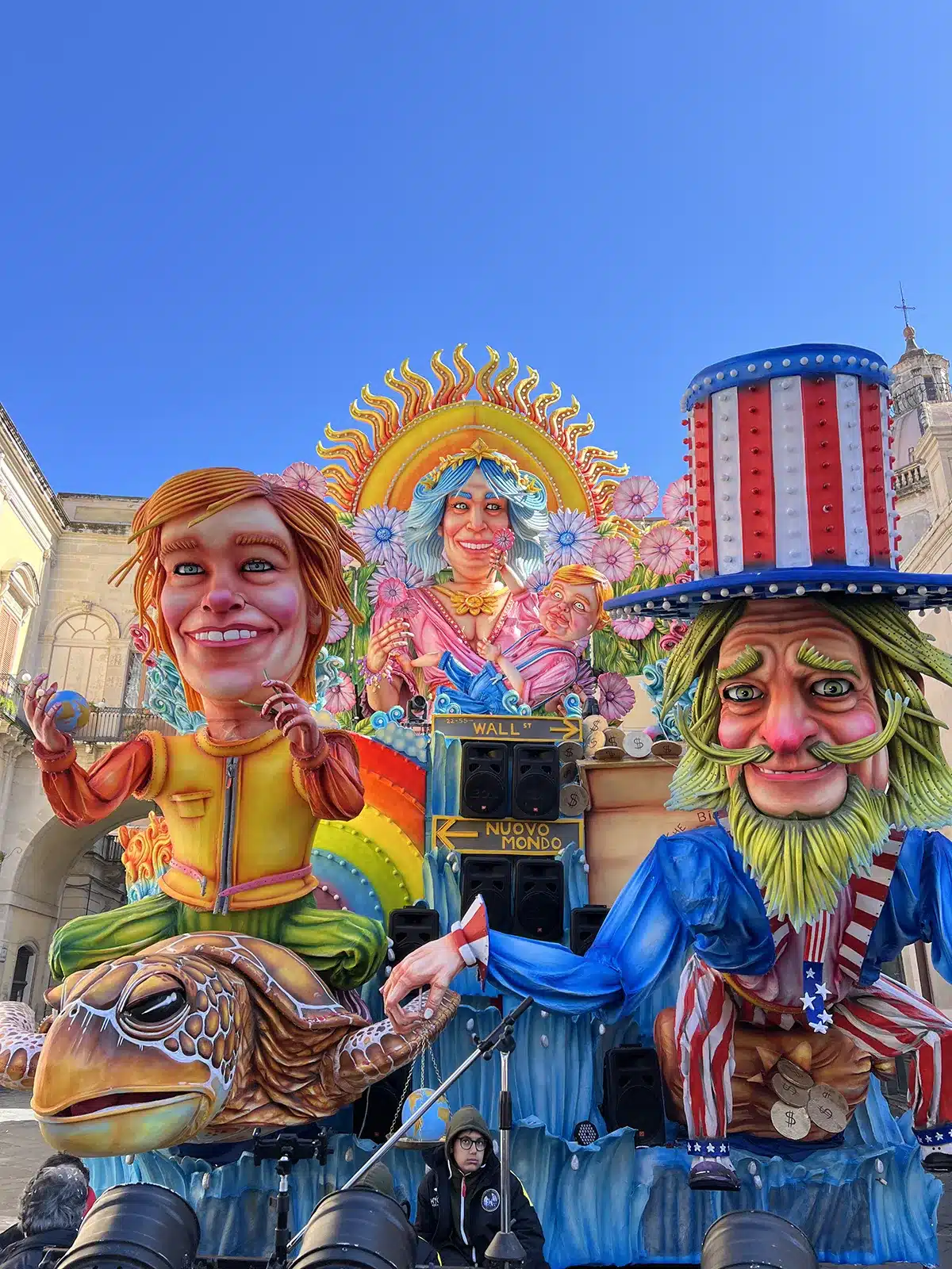 Carnevale di Acireale 2026; carri allegorici rappresentazione satira