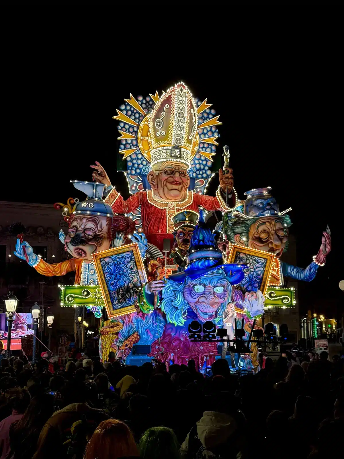 Ogni anno, la consegna delle chiavi della città a Re Burlone segna l’inizio simbolico di un tempo sospeso, fatto di satira, creatività e allegria condivisa. Maschere, coriandoli e musica invadono le strade, mentre i maestosi carri allegorico-grotteschi in cartapesta dominano la scena con la loro imponenza scenografica.