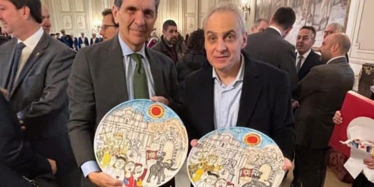 A margine della cerimonia di apertura della Festa di Sant’Agata, il sindaco Enrico Trantino ha ricevuto la visita ufficiale della delegazione della Contrada della Torre di Siena, composta dal Priore Massimo Bianchi e dal Provveditore alla Cultura Luca Bonomi.