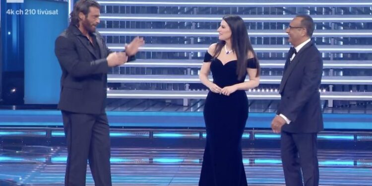 Appena salito sul palco, Can Yaman si è prestato a un gioco di battute con Laura Pausini. Tra simpatici confronti su Carlo Conti e lo stesso Yaman, la conversazione ha toccato con leggerezza e ironia temi come la pronuncia del nome “Can” (interpretato scherzosamente come “Gianni”), il mistero della Z nella grammatica italiana e le differenze culturali fra Italia e Turchia. Il pubblico ha risposto con risate e grande partecipazione, facendo emergere l’abilità di Yaman nel padroneggiare l’italiano con naturalezza e charme.