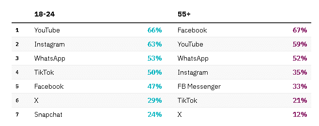 Dai dati raccolti e dall’analisi condotta si evidenzia come i giovani, fino a 10 anni fa, si tenessero informati tramite i diversi siti web e le app delle testate giornalistiche. Oggi tutto sembra essere cambiato: la fonte principale sono i social media. In particolare si affidano a piattaforme come TikTok, Instagram e YouTube. Inoltre si evince come i giovani tendano a preferire l’ascolto o la visione di notizie e tendano ad ascoltare più podcast rispetto alla fascia d’età più anziana. Di seguito le percentuali e il confronto con la fascia adulta.