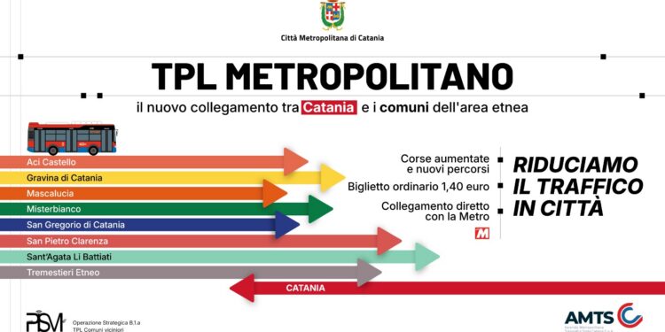Si registra un’importante evoluzione per il sistema della mobilità del territorio etneo. È infatti ormai prossimo l’avvio del Trasporto Pubblico Locale tra la Città di Catania e i Comuni vicinori, un intervento che permetterà di decongestionare il traffico urbano e rispondere alla crescente richiesta di mobilità alternativa rispetto all’utilizzo delle auto private.