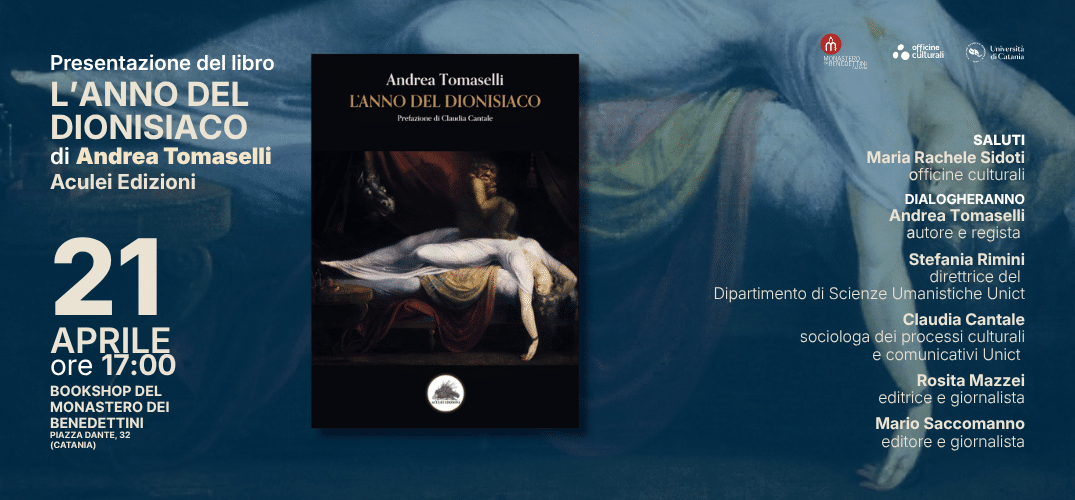Accanto alle attività dedicate ai più piccoli, il Monastero dei Benedettini ospita anche un appuntamento di rilievo nel panorama culturale cittadino. Oggi, Martedì 21 aprile alle ore 17.00, presso il bookshop del complesso, si terrà la presentazione del romanzo “L’anno del dionisiaco” di Andrea Tomaselli, pubblicato da Aculei Edizioni e promosso da Officine Culturali. L’incontro sarà introdotto da Maria Rachele Sidoti e vedrà il coinvolgimento di figure del mondo accademico e culturale, tra cui Stefania Rimini, Claudia Cantale, Rosita Mazzei e Mario Saccomanno, in un dialogo che promette di approfondire i temi complessi dell’opera.