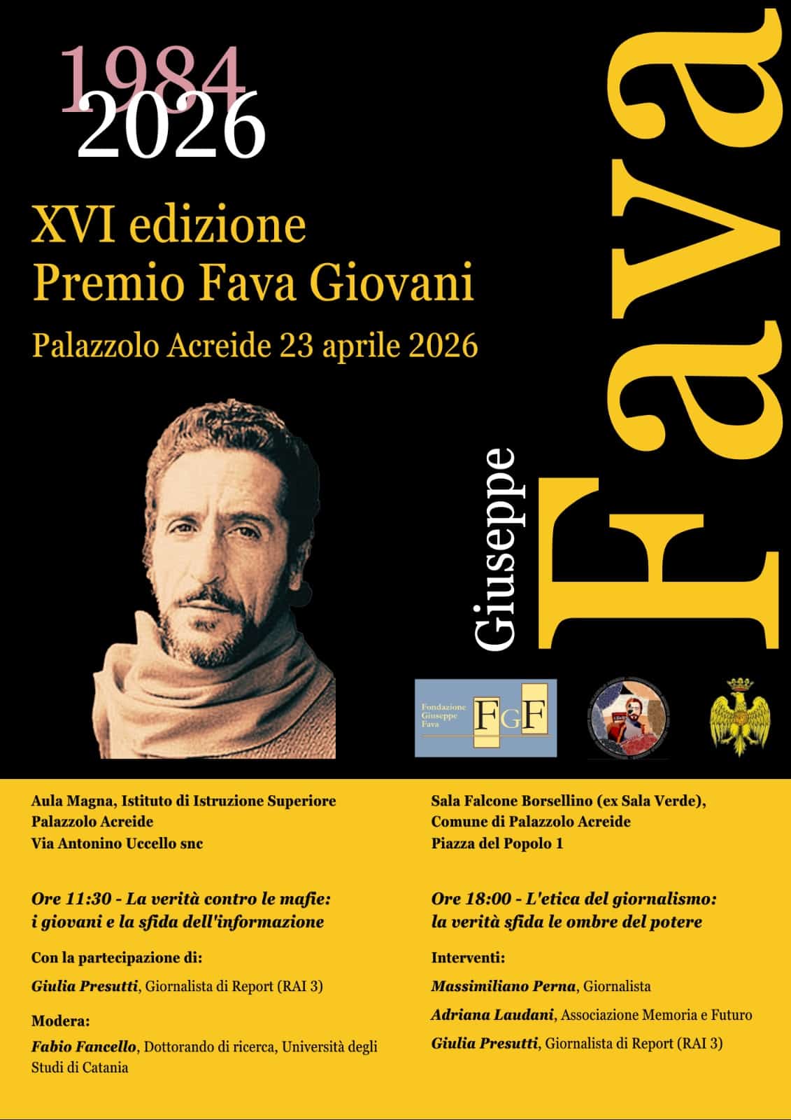 La giornata dedicata al Premio Fava Giovani si aprirà con un incontro rivolto agli studenti dell’Istituto d’Istruzione Superiore di Palazzolo Acreide, previsto alle ore 11.30 nell’Aula Magna della scuola. L’appuntamento, intitolato “La verità contro le mafie: i giovani e la sfida dell’informazione”, rappresenta un momento centrale del progetto educativo legato al premio, con l’obiettivo di avvicinare le nuove generazioni ai temi del giornalismo, dell’informazione e del contrasto alle mafie. Il dialogo tra la giornalista e gli studenti sarà moderato da Fabio Fancello, dottorando dell’Università di Catania e membro del Coordinamento Giuseppe Fava, e offrirà uno spazio di confronto aperto sulle opportunità e sulle criticità del mondo dell’informazione contemporanea, anche alla luce delle trasformazioni digitali.
