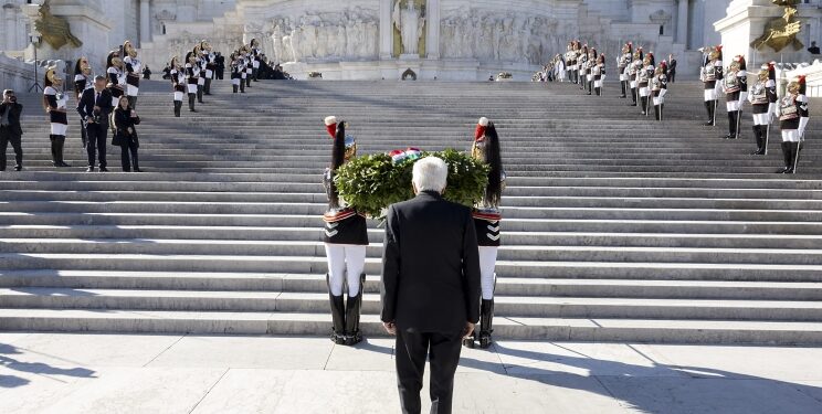 Il Presidente Sergio Mattarella in occasione della deposizione, in forma ufficiale, di una corona d’alloro sulla Tomba del Milite Ignoto, nell’81°anniversario della Liberazione