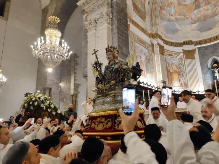 Leggi articoloDetailsSi tiene oggi il tradizionale appuntamento con l'Ottava di Sant'Agata. Stamattina l'uscita del busto reliquiario di Sant’Agata dalla sua cammaredda.