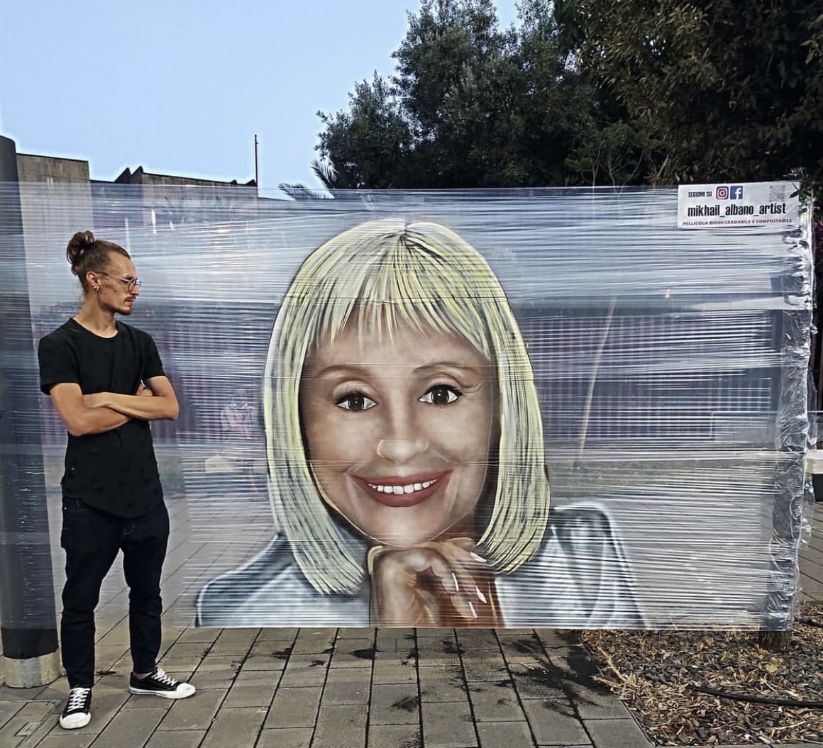 Omaggio a Raffaella Carrà a Catania: l'artista Mikhail Albano le dedica un'opera.
